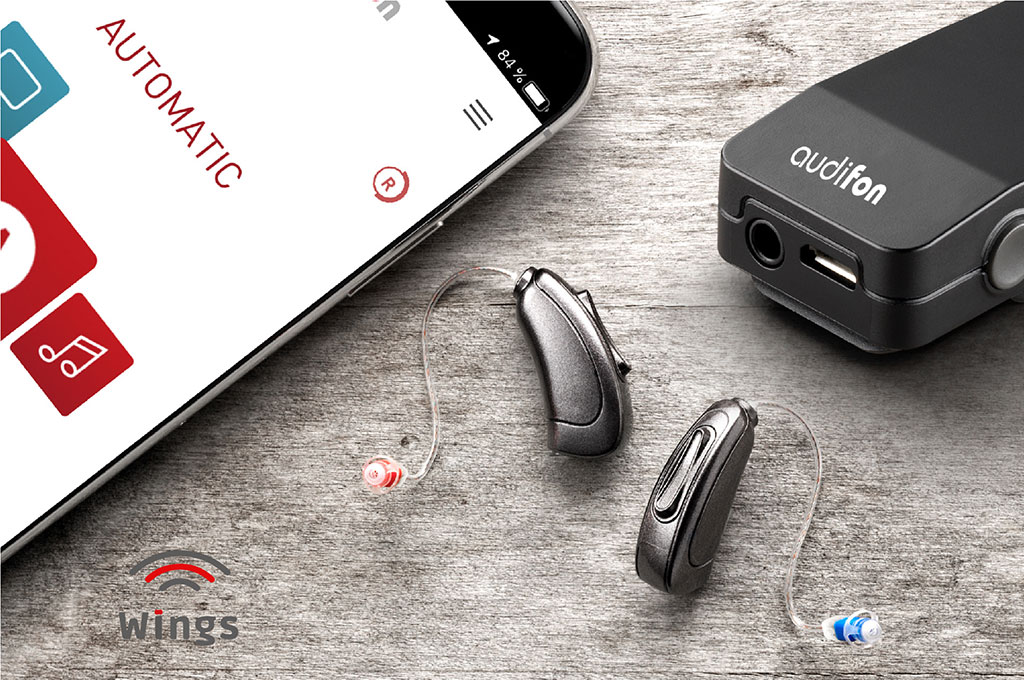 - Transmisión inalámbrica de sonido. Transmitir sonido directamente a sus Wings y recibir llamadas telefónicas es más fácil que nunca utilizando un iPhone. Use la aplicación de Audifon para seleccionar la entrada del micrófono del audífono como más le guste, para reducir el ruido de fondo.